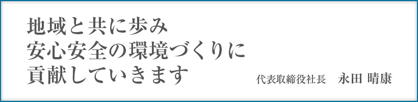 社会のニーズにこたえるとともにお客様の安心・安全、地域の安心・安全を念頭に信頼される企業になるよう会社一丸となって前進してまいります。